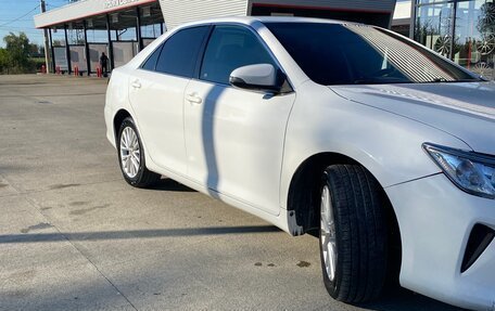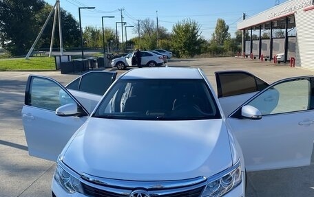 Машина Toyota Camry 2014 года выпуска, цвет белый. Пробег 164 000 километров. Объем двигателя 2,5 литра. Мощность 181 лошадиных сил. Тип двигателя – бензин. Коробка автоматическая. Привод - передний. В отличном состоянии, не требуе...